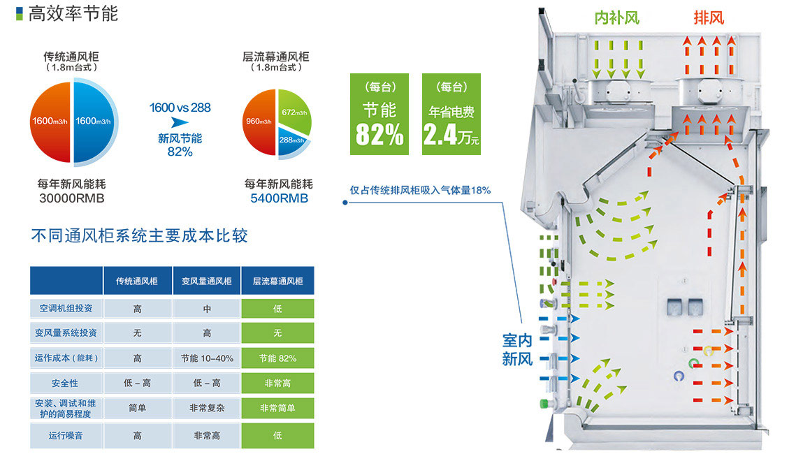 對排風(fēng)柜內(nèi)部氣流組織進(jìn)行千次模擬,自主研發(fā)的產(chǎn)品;不但加速有害氣體的排出,同時減少了排風(fēng)柜的總排風(fēng)量。